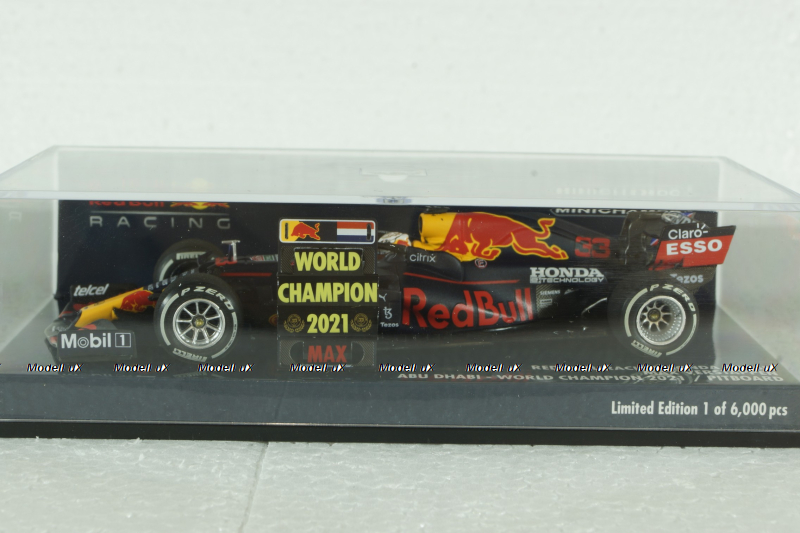 Red Bull Racing Honda RB16B - Max Verstappen – Winner Abu Dhabi GP 2021 W/Pitboard – WC 2021, 410212333, Minichamps 1:43