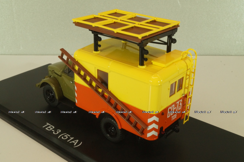 ТВ-3 телескопическая вышка на шасси Газ-51А 1960, зеленый/желтый/красный, SSM1627, SSM 1:43