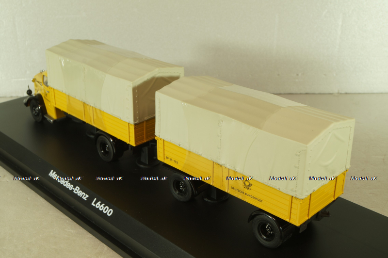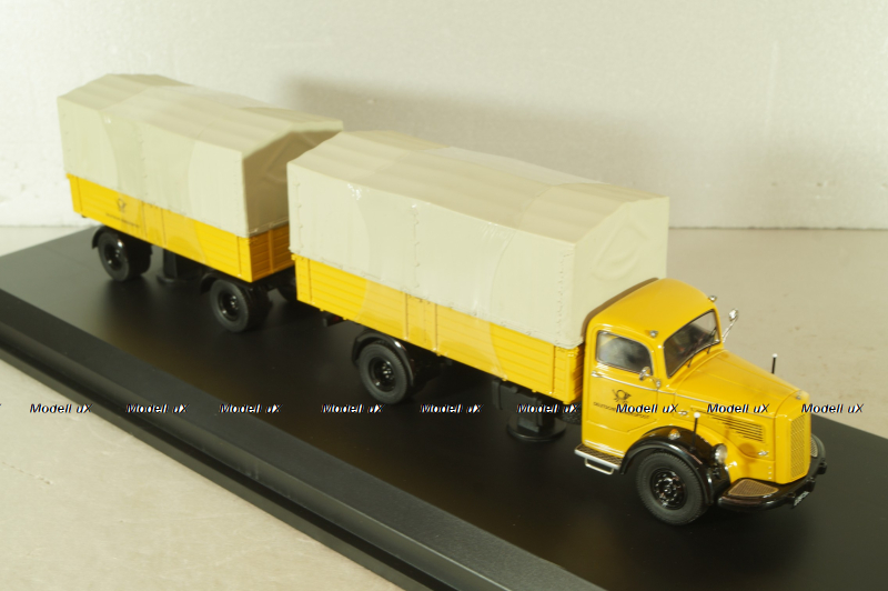 Mercedes L 6600 truck with trailer Deutsche Bundespost 1950, yellow, 8821, Schuco 1:43