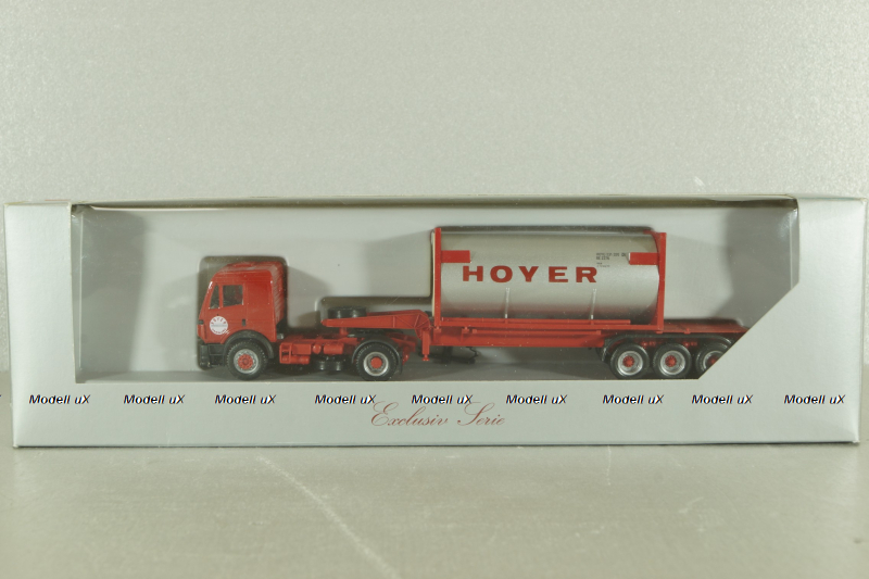 Mercedes SK 1850 tractor with semi trailer HOYER 1994, red, Herpa 1:87