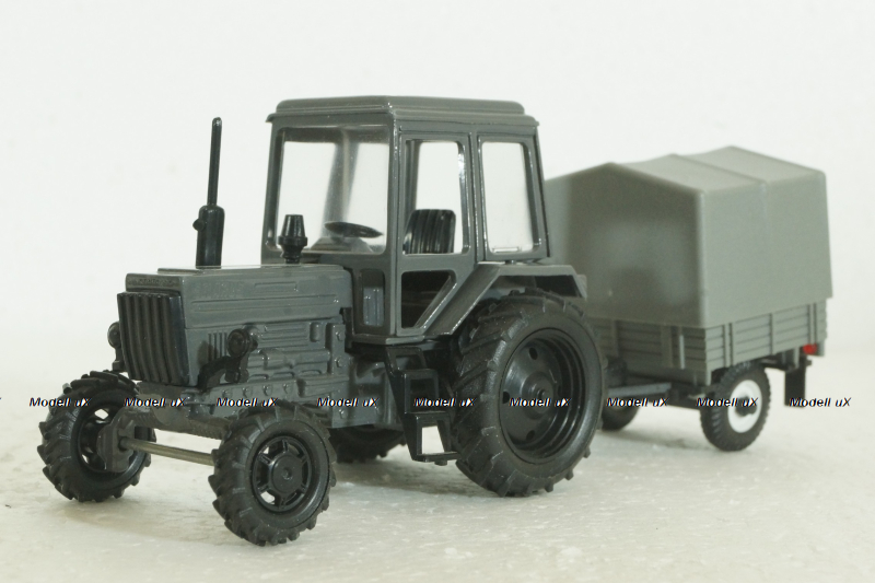 МТЗ-80, Беларусь, трактор с прицепом, серый, Агат 1:43