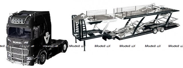 LOHR Car transporter & Scania 730S V8 Set #1019/51 + #971, NZG 1:18