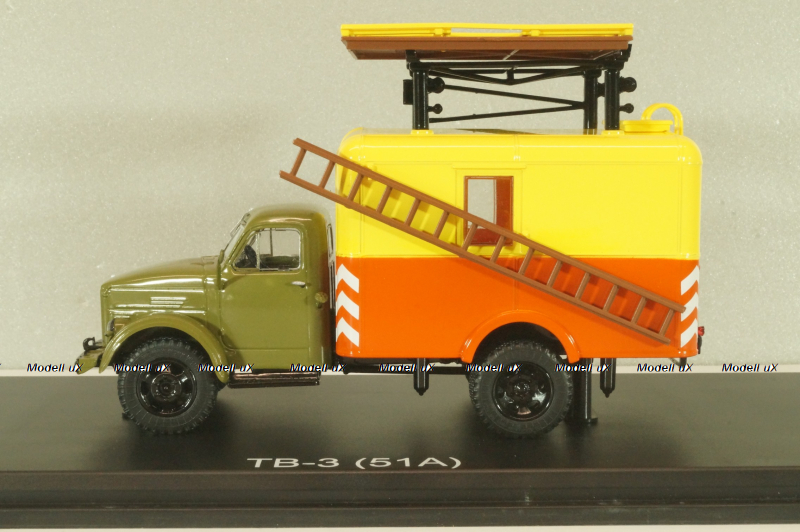 ТВ-3 телескопическая вышка на шасси Газ-51А 1960, зеленый/желтый/красный, SSM1627, SSM 1:43
