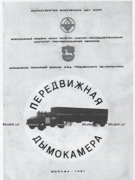 Зил-130 с п/полуприцем ОДАЗ-9958 пожарный, передвижная дымокамера, 1991г., TruckTyr 1:43